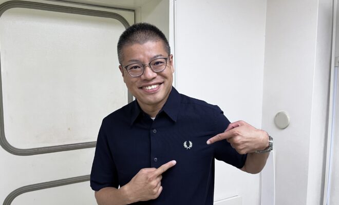 シャツ ¥19,800ポロシャツのようにカジュアルに着られて、キレイめにまとまる極上のシャツ✨紺の一色でしっかりまとまるのに、ロゴの白でポップにもしてくれます☺&…