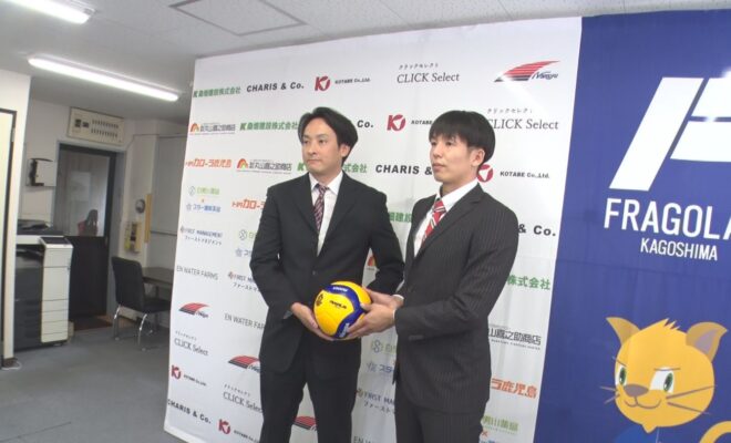 日置市を拠点に活動する男子バレーボールチーム・フラーゴラッド鹿児島。今年11月のV3リーグ「参入」を前に、6月26日に新監督と新加入選手の発表会見が開かれました。