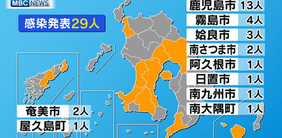 新型コロナ感染者 鹿児島県内29人 17日ぶり30人下回る