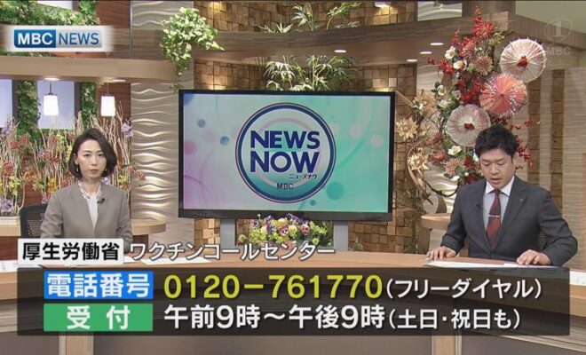 厚生労働省は15日から、新型コロナワクチンに関する電話相談窓口、コールセンターを設置しました。電話番号・0120−761770(フリーダイヤル)受付期間・午前9時から午後9時まで(土日・祝日も受け付け)…