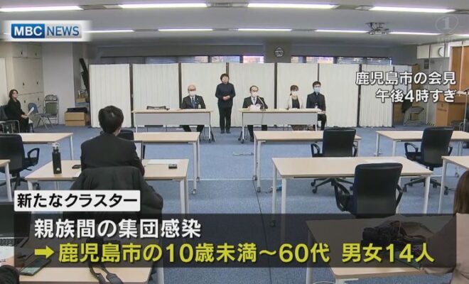 鹿児島市は9日県内で18例目となる新型コロナウイルスの感染者集団=クラスターが確認されたと発表しました。鹿児島市によりますと新たなクラスターは親族間の集団感染で、8日から9日までに鹿児島市の10歳未満から60代までの男女1…