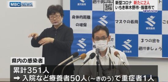新型コロナ 鹿児島県内で新たに1人感染 2人死亡