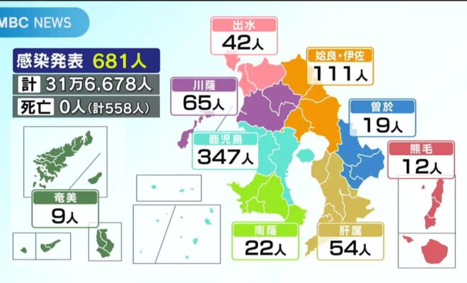 新型コロナ 鹿児島県で新たに681人感染 死者発表なし