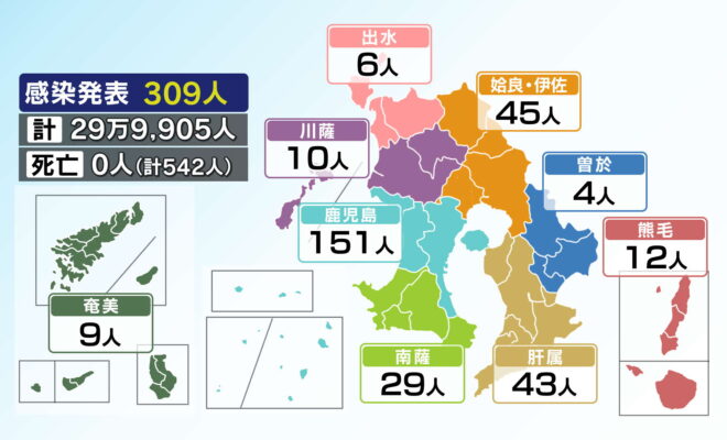 新型コロナ 鹿児島県で新たに309人感染 先週日曜を282人下回る