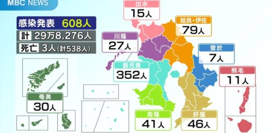 新型コロナ 鹿児島県で新たに608人感染 病床フェーズは4に引き下げ