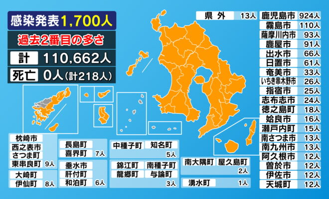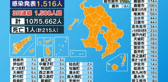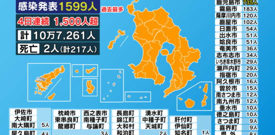 【市町村別詳細】新型コロナ感染者1701人 2日連続最多更新 鹿児島県