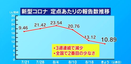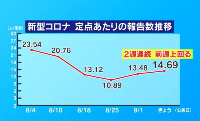 9月1日発表された新型コロナウイルスの1週間の定点あたりの感染者数は、鹿児島では13・48…