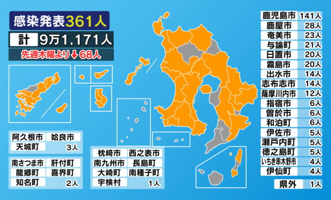 新型コロナ 鹿児島県内新たに361人 クラスター1件