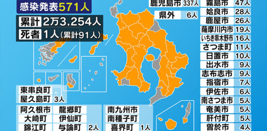 新型コロナ 鹿児島県内で新たに571人感染・1人死亡 死者は6日連続