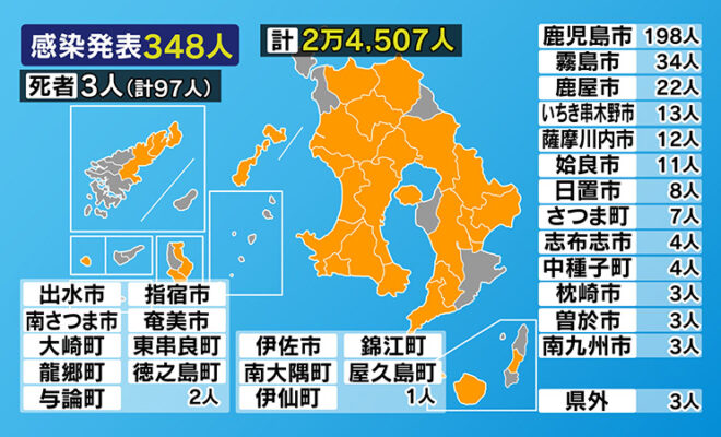 新型コロナ 鹿児島県 新たに348人 3人死亡