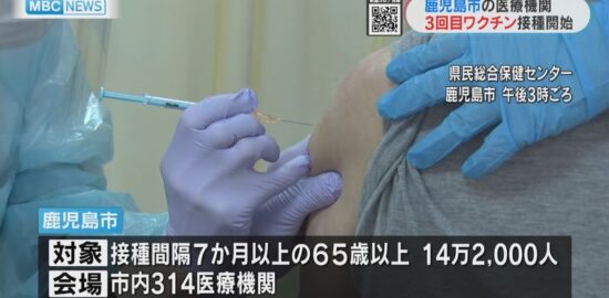 65歳以上を対象にした新型コロナワクチンの3回目の接種が、1日から鹿児島市で始まり…