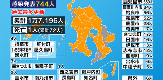 鹿児島県内では1日、新型コロナウイルスの感染者が過去最多の744人発表されました。…