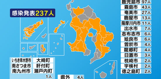 新型コロナ 鹿児島県内で新たに237人 約5か月ぶりに200人超