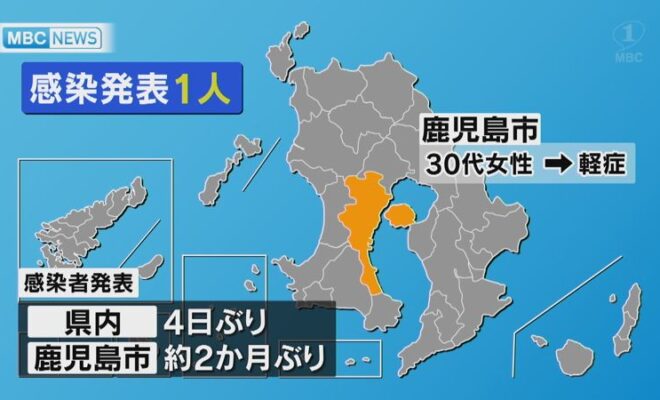 鹿児島県内では29日、新型コロナウイルスの感染者が鹿児島市で1人発表されました。鹿児島市での感染者発表は先月2日以来、およそ2か月ぶりです。感染が確認されたのは、鹿児島市の30代女性です。女性は発熱などの症状があり軽症だと…