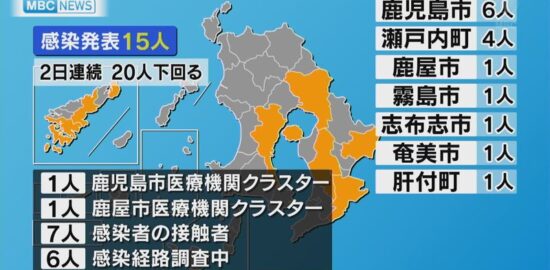 新型コロナ感染 鹿児島県内で新たに15人