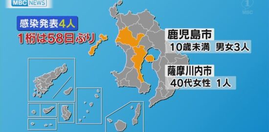 新型コロナ 鹿児島県内で新たに4人 1桁は58日ぶり