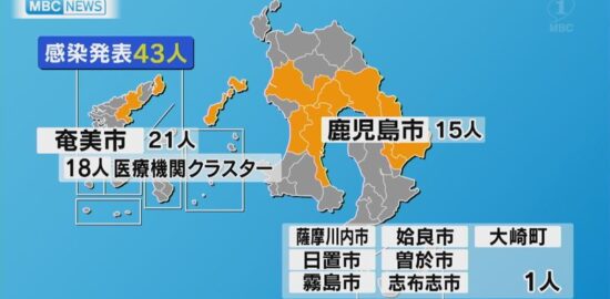鹿児島県内では6日、新型コロナウイルスの感染者が新たに43人発表されました。県内の1日の感…