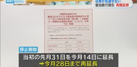 新型コロナの感染拡大に伴って鹿児島県は、県民向けの宿泊旅行割引「今こそ鹿児島の旅」の販売を…