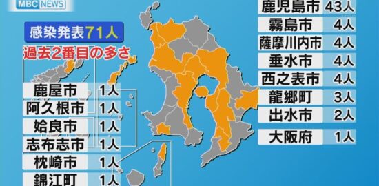 鹿児島県内では7日、新型コロナウイルスの感染者が新たに71人発表されました。◆8月…