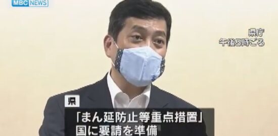 塩田知事はこのまま新型コロナウイルスの感染拡大が続けば、国に緊急事態宣言に準じる「まん延防…