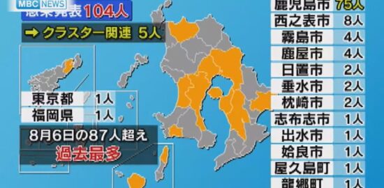 鹿児島県内では8日、新型コロナウイルスの感染者が過去最多となる104人発表されました。…