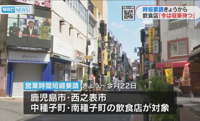 新型コロナの感染者急増と鹿児島県の警戒基準「ステージ3」への引き上げなどに伴い、鹿児島市と種子島の1市2町では、9日から飲食店への営業時間短縮要請期間が始まりました。これで4回目の時短要請になる鹿児島市の飲食店からは、落胆の声が聞…