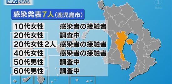 新型コロナウイルスの感染者が鹿児島県内で6日、新たに7人発表されました。新たに発表…