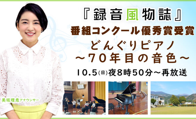 『録音風物誌』番組コンクール優秀賞受賞MBCラジオ『どんぐりピアノ~70年目の音色』10/5(日)夜8時50分~再放送戦後の貧しい時代に、霧島市牧園の三体小学校の子どもたちがどんぐりを集めて買…