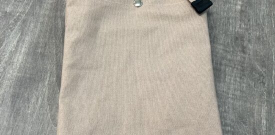 そのまま手首にかけてミニクラッチバッグとしてもバッグインバッグとしても使えるファスナー付きポーチ。中にはポケットもついているので、ちょっとした小物の整理にも活躍してくれそうです。軽く糊がついた、弱撥水タイプの帆布製…