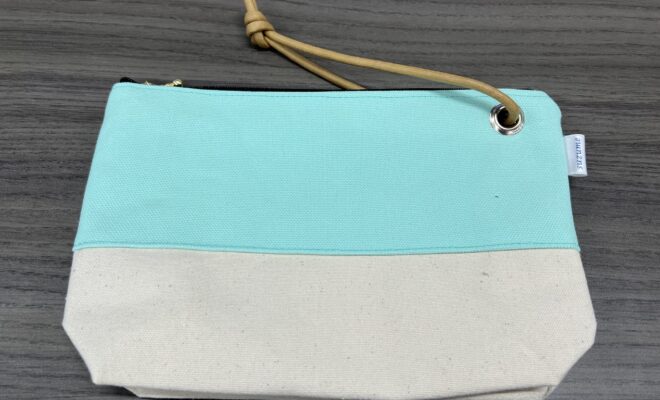 そのまま手首にかけてミニクラッチバッグとしてもバッグインバッグとしても使えるファスナー付きポーチ。中にはポケットもついているので、ちょっとした小物の整理にも活躍してくれそうです。軽く糊がついた、弱撥水タイプの帆布製…