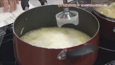 • 汁気が少なくなった時は、牛乳を加えて調整してください。