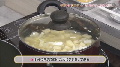 ★水分の蒸発を防ぐためにフタをして煮ていきましょう。