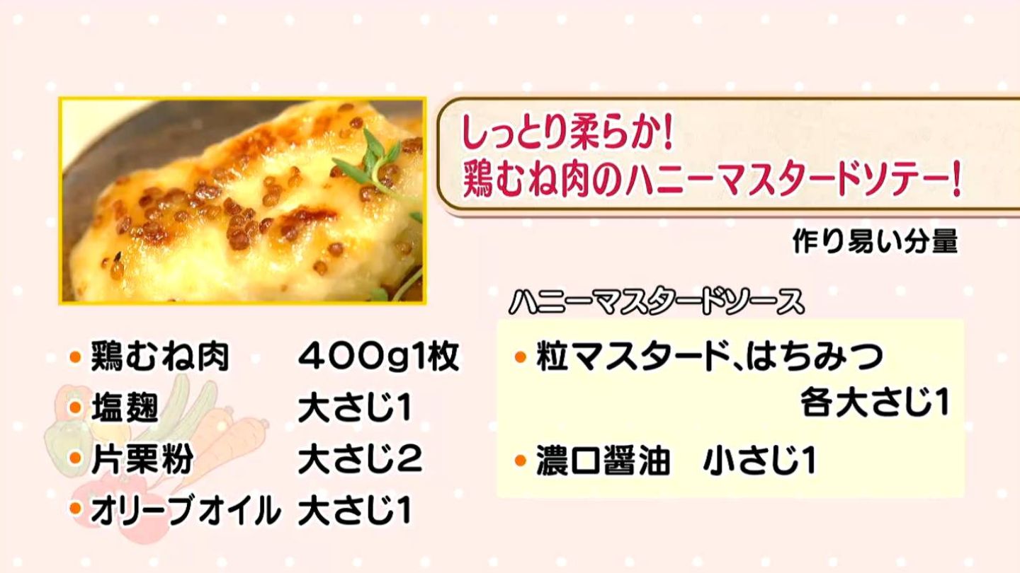 低カロリー高たんぱくの鶏胸肉を相性のいいハニーマスタードソースで仕上げます。