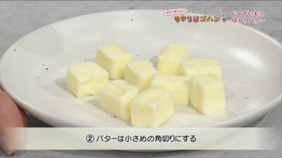 - バターの風味とゆかりのふりかけでさっぱりとした食べ進むひと品
