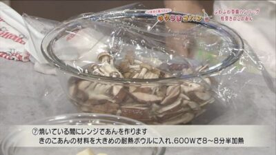 焼いている間にレンジであんを作ります。きのこあんの材料(★)を大きめの耐熱ボウルに入れ、600Wのレンジで8分~8分半加熱。