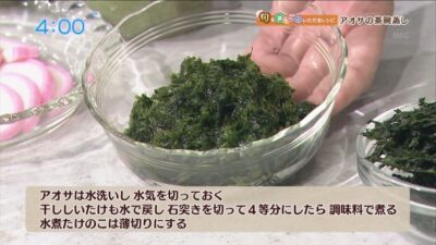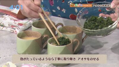 泡がたっているようなら丁寧に取り除き、アオサをのせます。