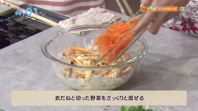★野菜は皮も一緒に、切りながら衣だねに入れていきます。- 4