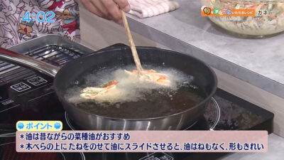 ★油に入れた後、少し箸でおさえると広がらずにキレイな形になります
