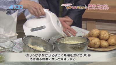 - 普通のじゃが芋の場合は、湯通しの時間を少し長めにとる