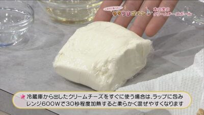 クリームチーズは室温に1時間ほど戻しておきましょう。