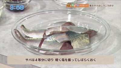 サバは4等分に切り、軽く塩を振ってしばらくおく。