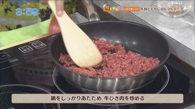 鍋をしっかりあたため、牛ひき肉を炒める。★油は不要