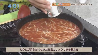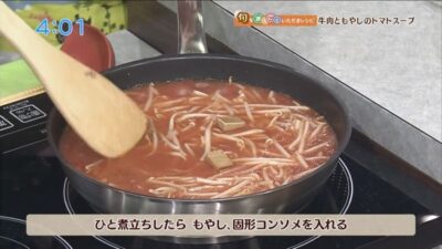 お財布にもやさしい、ほっこりスープ「牛肉ともやしのトマトスープ」。