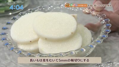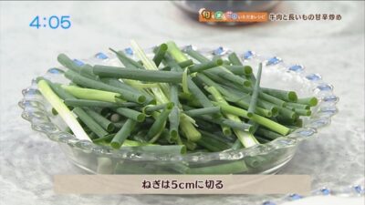 山いもも牛肉も元気になる素材です。山芋と牛肉を甘辛く炒め、たっぷり加えたネギがアクセントになっています。甘辛味のたれでご飯が進むひと品です。
