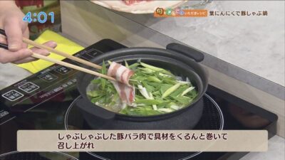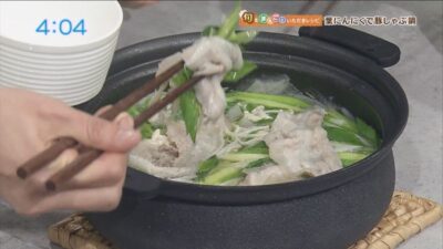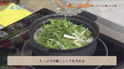 旬をまるごといただきレシピは、身も心もぽっかぽかになる「葉にんにくで豚しゃぶ鍋」を紹介。