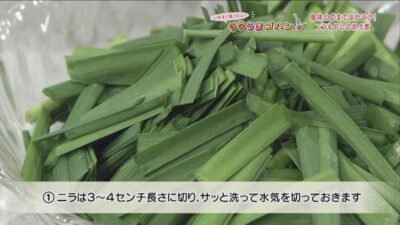 ニラは3~4cm長さに切り、サッと洗って水気を切っておきます。