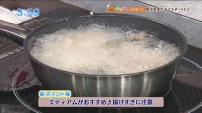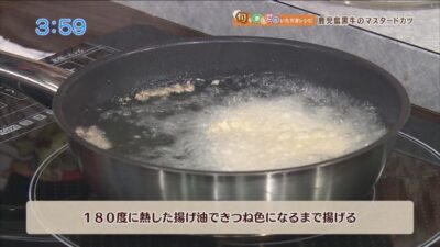 180度に熱した揚げ油できつね色になるまで揚げる。