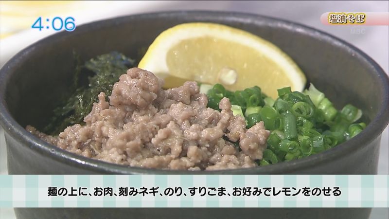 麺の上に、お肉、刻みネギ、のり、すりごま、お好みでレモンをのせる。