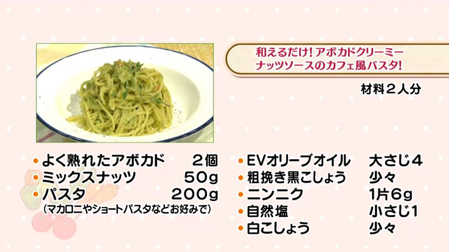ミックスナッツの風味、旨味とコクが、チーズのようなクリーミーな深みを持たせてくれる濃厚ソース! ナッツの中にアボカドの爽やかなおいしさも感じる、和えるだけの簡単カフェ風パスタです!!