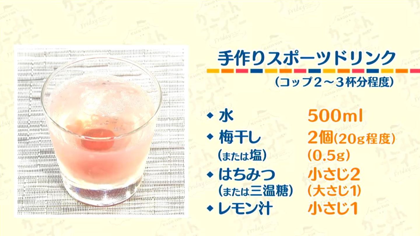 気温上昇による体温上昇を抑えるためには「汗」が重要なので、こまめな水分補給をして、体内に水分を保っておくことが大切です。ただ、汗には微量のミネラルも含まれるので、ミネラル補給も重要。